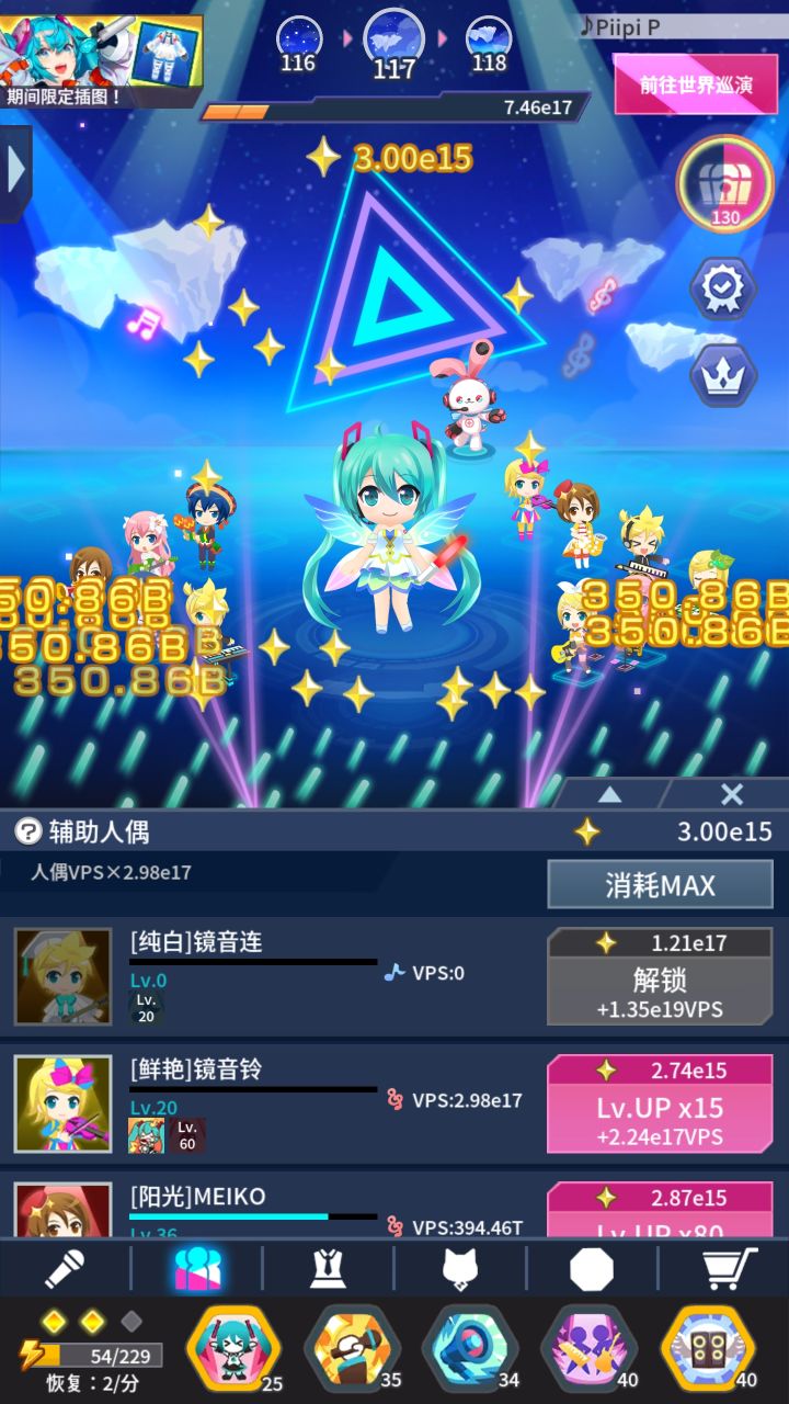这游戏最开始我以为是音游,然后开服前看了看宣传发现不对劲,最后到手发现是放置类初音BGM播放器。简单说一下登录,由于我的手机没法安谷歌框架,我选择从其他网站上先下了安装包。进去之后有个提示说没谷歌套件不能玩,这个不用管他,直接可学商网更新,更新完后进去玩是不需要刮题字的。至于游戏内容,我只能说这是一款合格的放置游戏,缺点是机械操作并且很容易玩腻,优点是挂机就完事。游戏里面的BGM我没细数,约莫