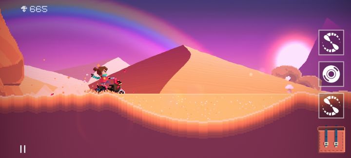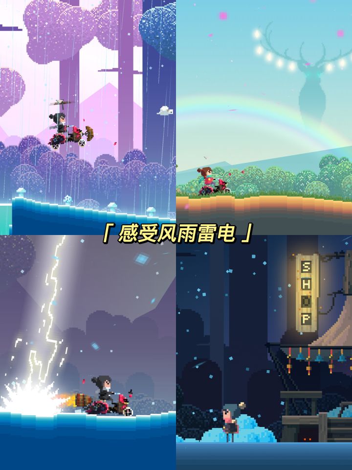个人感受🔅:游戏难度不大,但是带着追梦的目标去体验,这种感觉简直不要太美好,尤其游戏的画面做的非常精美,色彩搭配令人十分享受,你可以穿越茂密的树林,走过宽阔的草原,也能见到美轮美奂的神秘沙漠,你也能在不同的风景中感受到同一场景风雨雷电下的变幻莫测,如果你想体验一场像素旅行,这款精致的跑酷游戏千万不要错过