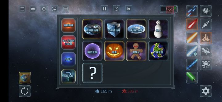 新版本隐藏星球姜饼人解锁:在雪人形天体(用冰冻激光完全冰冻地球以解锁)使用飞船2号武器(歼星炮),大概在歼星炮撤离时重置。方块世界解锁:往立方体地球(用网格图标铺助工具将地球切成方块以解锁)发射一个以上的治疗火箭,火箭接触到地表时重置。