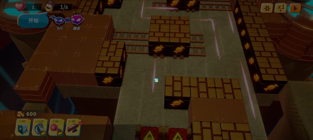 这关不用电玩的话可以试试飞镖阵。有两个需要注意的地方: 每次重新开始怪物路线会变,可以选个适合开局的路线 有时候一个风扇的风会将另一个风扇的风向改变导致形成不了回环,把风扇掉个位置就行了。#糖果灾难攻略