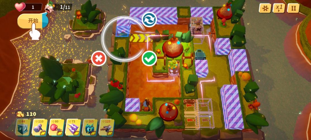 说实话这是我个人感觉最难的一关,我已经反复打了很多遍了,左边一半不能放置地面陷阱,墙面又够不到的地形,非常可怕。目前侥幸拿了榜一,但是我觉得这关还有无限的可能。因为挑战模式和大乱斗很像,我就一起做攻略了。 首先这关的主要输出是弹珠机,这是一台利用得好上限可以非常高的陷阱,但是想用好难度也是不低。 开局放了便携墙体和地鼠锤,为了有效留怪,然后是开局内置的风扇和连弩记得摆放一下位置,不然打不到怪。左边