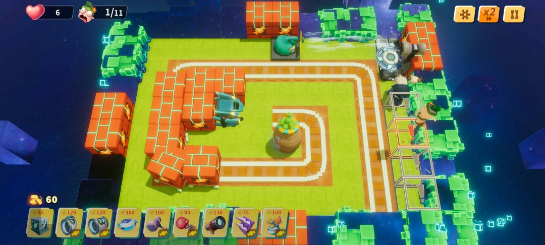 游戏玩法: 1、地形杀 2、灌伤害将敌人灌死 特殊的游戏机制: 1、陷阱在放置之后可以在后续期间改变位置,也就是说,如果不小心放跑少量怪物,但是又没必要建造新的防御建筑时,那么还可以通过改变部分陷阱的位置对放跑的怪物进行收尾工作。这个特性引出的进阶玩法就是可以利用自动割草机,通过不断的变换位置,将怪物的血量直接磨死 2、升级后的防御建筑,CD瞬间回满。也就是说,当一个建筑打出一次攻击之后进入读秒状