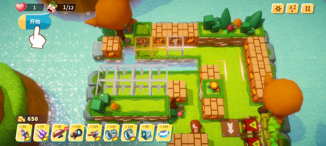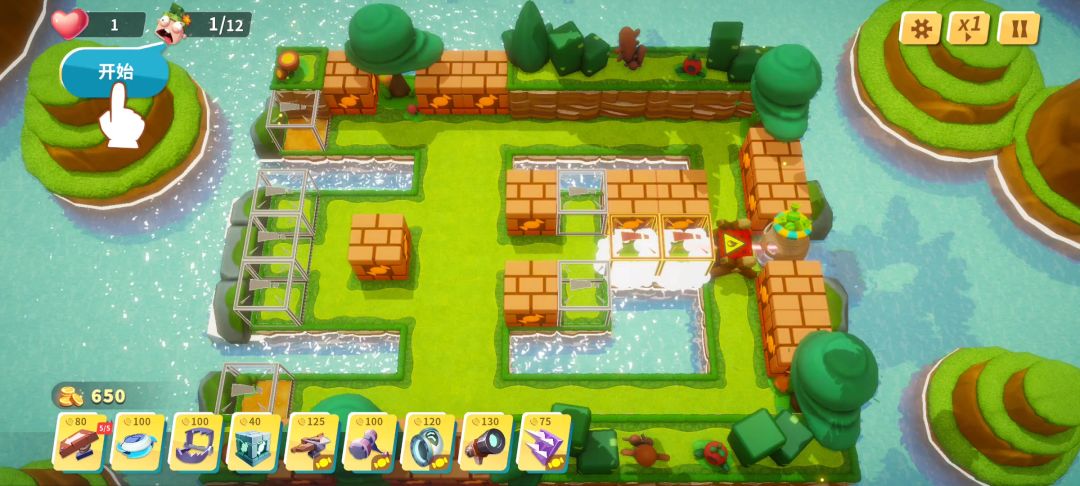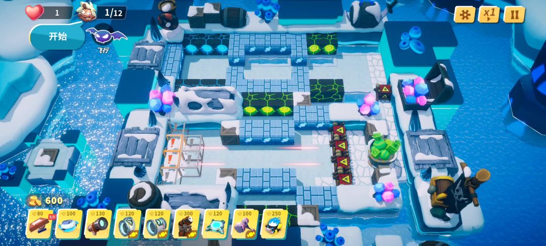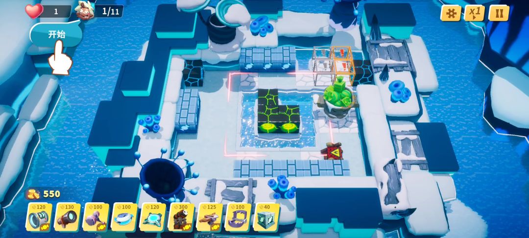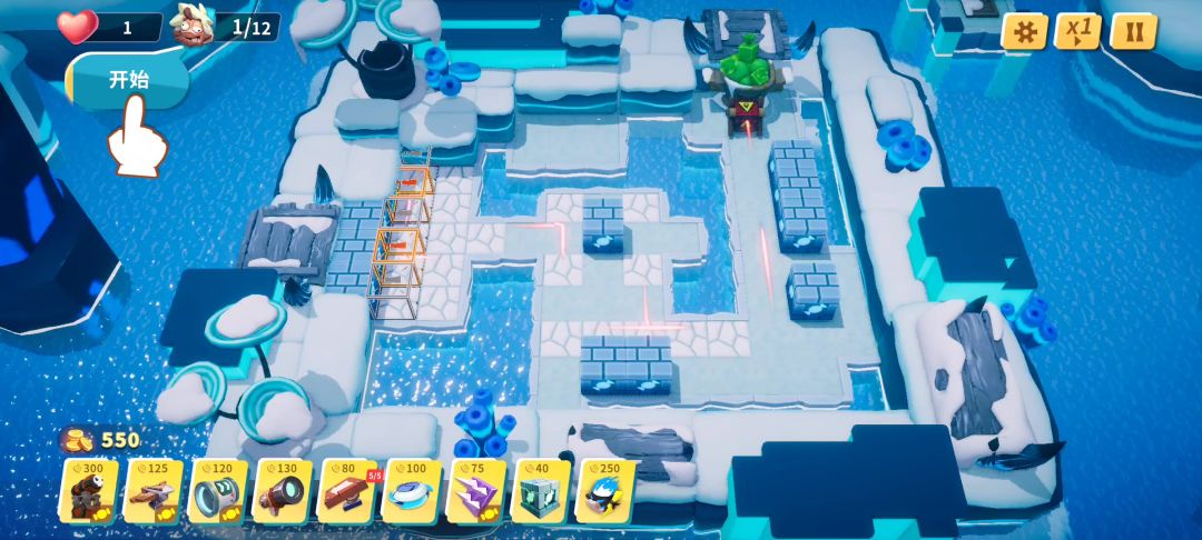 把凿冰的小人防住,建几个大炮就没什么难度了。忽略后面对付牛牛的那一段。#糖果灾难攻略