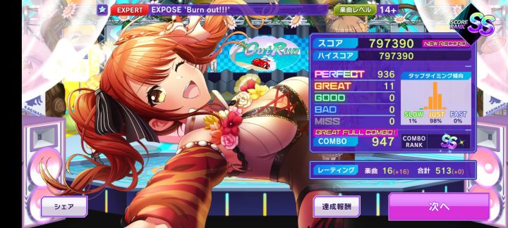 感觉应该是M4D最难的14+,只能说今晚手感是真的好,虽然M4D好像也没几首14+吧魂淡.明明在隔壁只有26可以初见FC的说.(哦对,还有黑叫.(