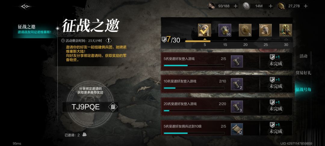 苯人开服一个月入坑,现在是郊区的老咸鱼。根据自己踩过的坑,写一些建议,如果能帮到征战新服的列席者的话,可以填一下我的邀请码TJ9PQE吗[表情_流口水][表情_流口水] (先感谢先前帮填的两位老哥!! 建议:1、1000龙鳞的额外建筑队列早买早享受 2、对于微氪(我的理解是一千块以下)、白嫖玩家,100累抽的列席战英每期抽满就收手(白送的次数+各类活动送的,每期补几千龙鳞)可以抽满,攒满24000