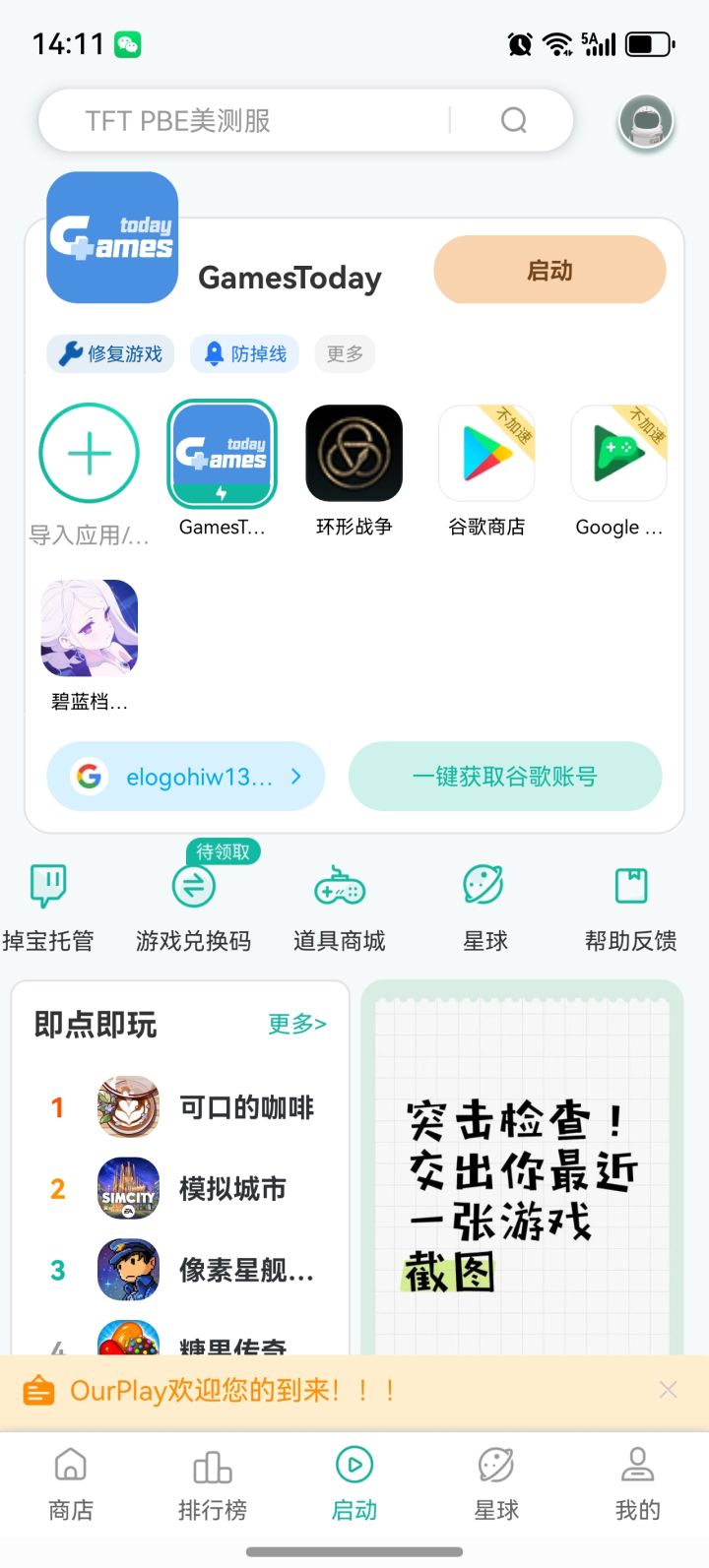 无需下载安装谷歌套,直接在华为应用市场里面下载ourplay,然后在这个APP里面登录谷歌账号,在去网页下载GamesToday,下好后无需安装,华为手机也安装不了,再打开ourplay用导入在APP内安装刚下载的GT,用ourplay内自带的加速打开GT,即可在GT里下载环形战争国际服,安装后都在在ourplay中加速启动就行,玩的很顺畅,但是没法充值,充值可以通过STEAM充值即可。