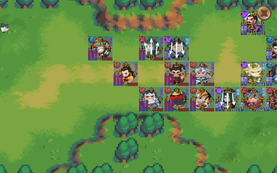 第五关,拿一个武将,再把其他武将中最适合拿弓的变成弓兵,顺利的话,酒馆可以升到四级。四级武将中,有曹操 孙策 张辽 司马懿都是通关必备武将,所以接下来两关可以不急着升级酒馆,先试几次能不能刷到这几个(不强求),如果来了司马,前期的田丰和孔融就可以卖了。