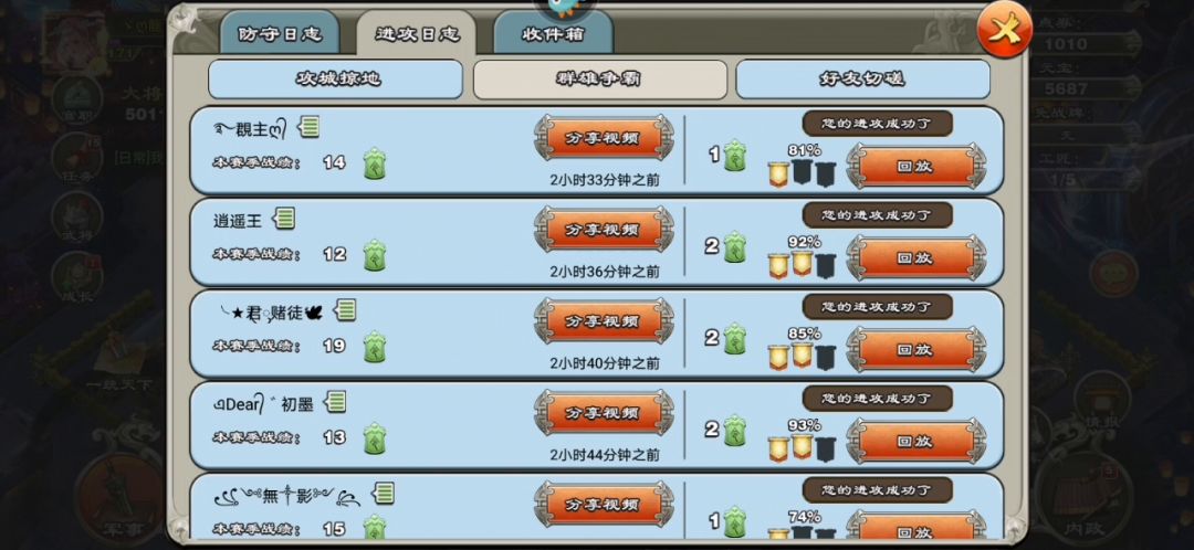 欢庆周年 1,一直不怎么玩偷,如何放武将,还是有些手生。 2,这次群雄打的乐乐,要不是他选择的阵法是新阵法,肯定也只能一盾。 3,月英死太快,没有盾武将去吸引对方武将火力,卧龙和周郎伤害不到位。 4,现在偷,同配置或者高配置的号,三盾确实不太容易了,如果只是切磋多次,肯定会有三盾的机会。 5,以后加油吧,再多多研究!😉😉