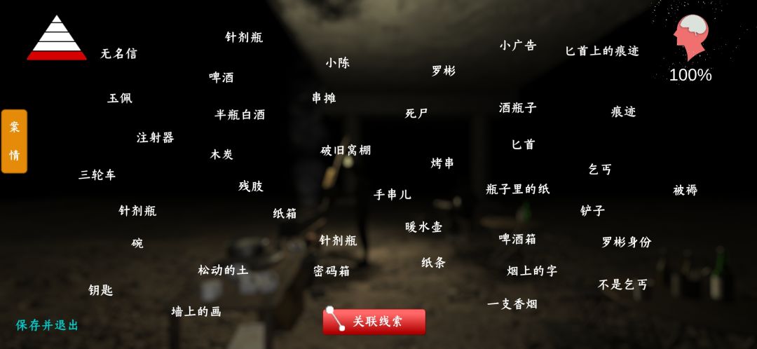 初始教室(五二班)可搜集线索: ①讲台 教具:讲台下面 (汉墓古尸图片和辛夫人化妆盒:教具密码2916打开可得 戒指,给陈庭君的信:化妆盒打开) 黑板前:黑板擦,直尺,三角尺 奖状:黑板左墙 讲台上:粉笔,教鞭 铁门钥匙:先到初始教室的时钟,不停点击钟得。 ②教室中课桌: 王思凤位: 圣斗士玩具,饭盒:抽屉里 一份卷子:座位上 铅笔涂鸦:把左边纸拿走,出现在桌上 天棚尺位置:打开饭盒获天棚尺 铅笔