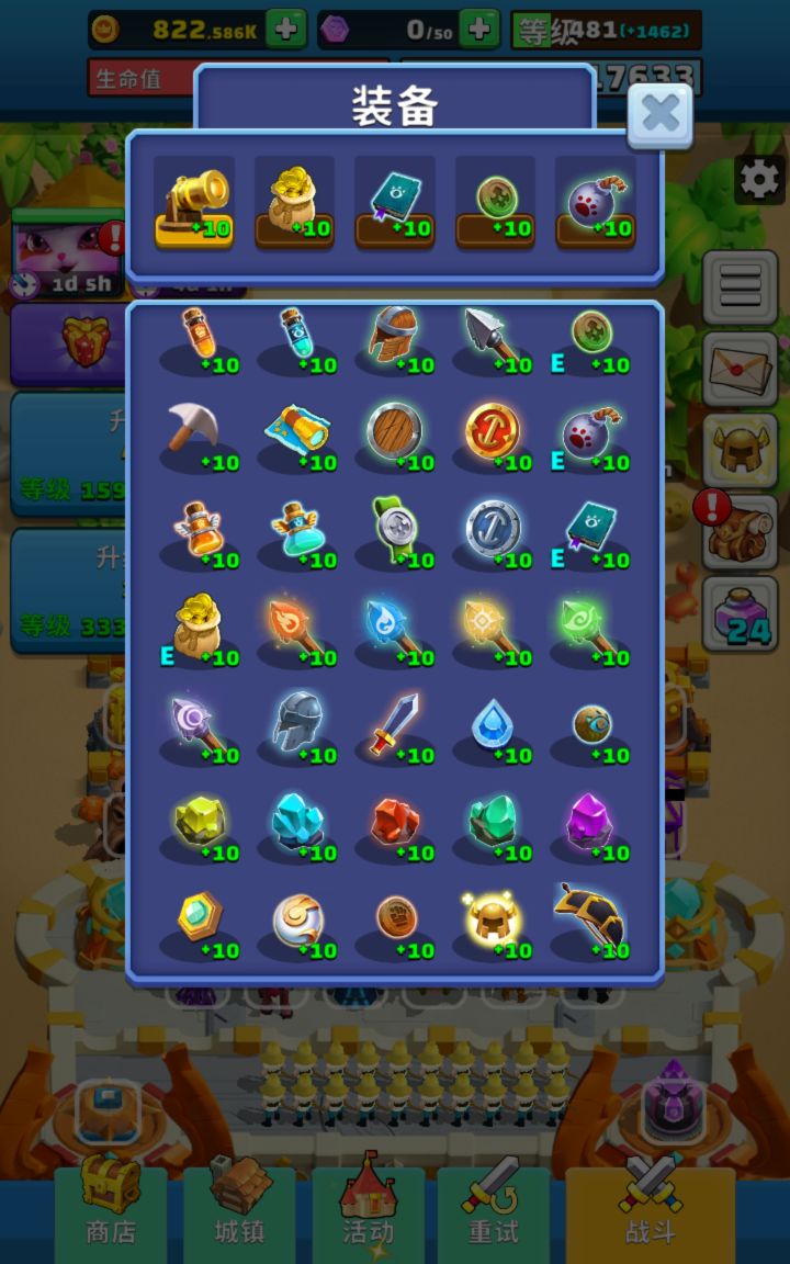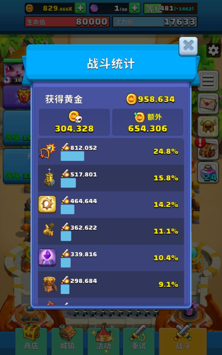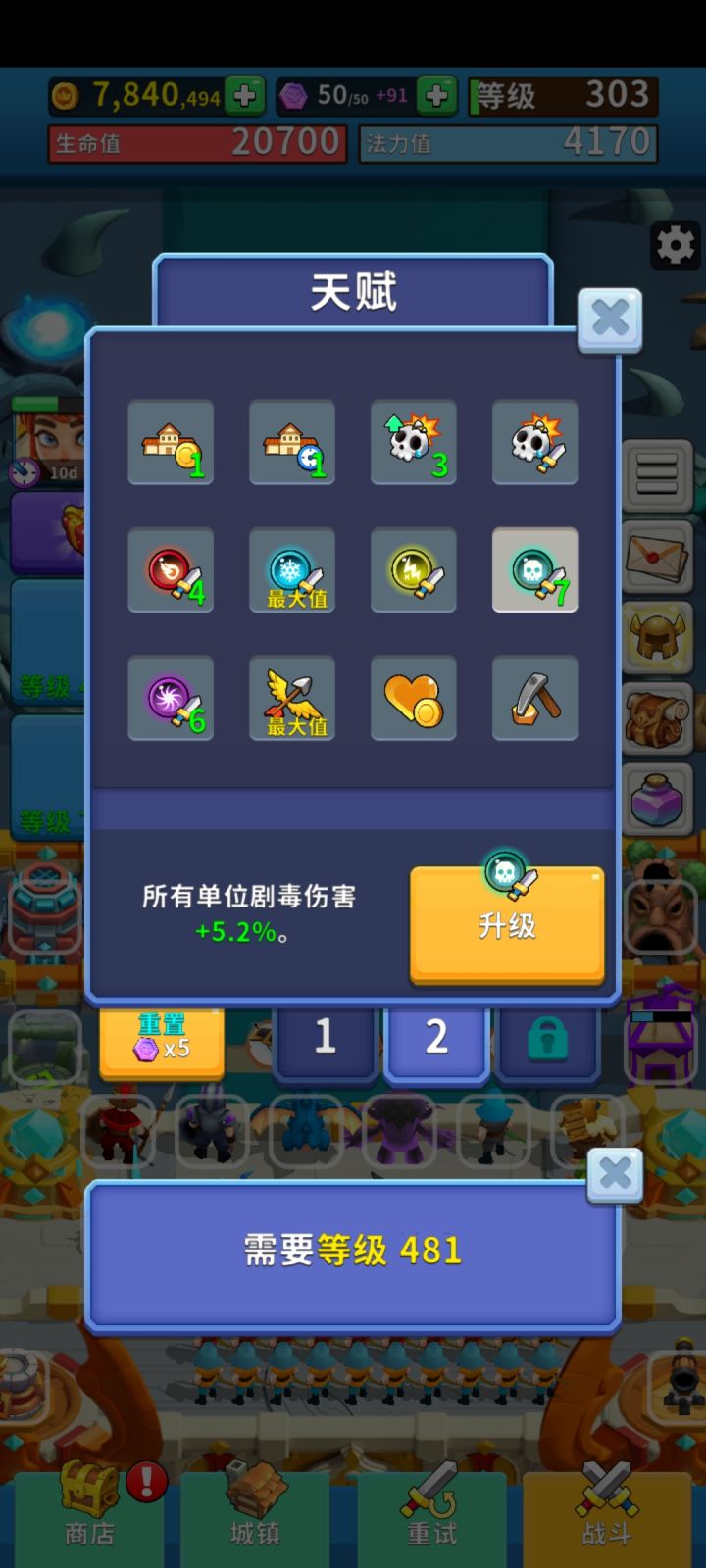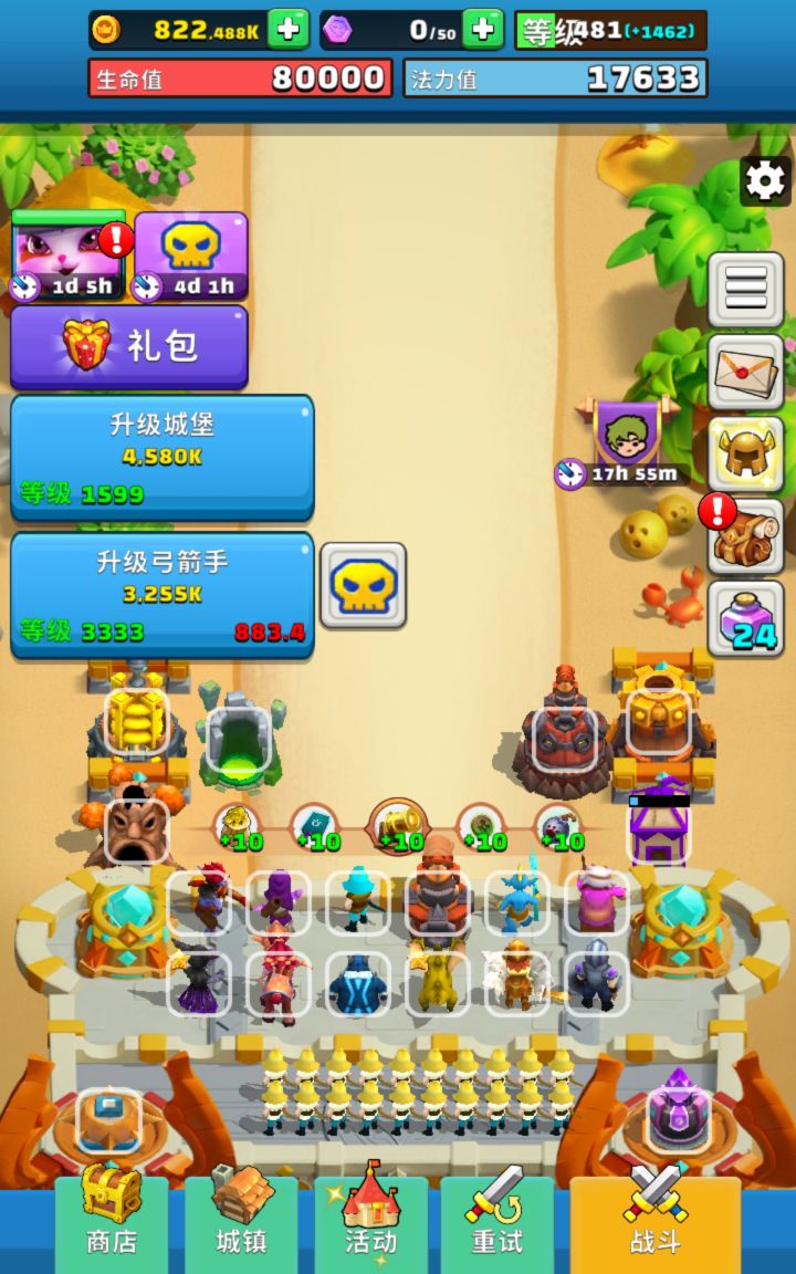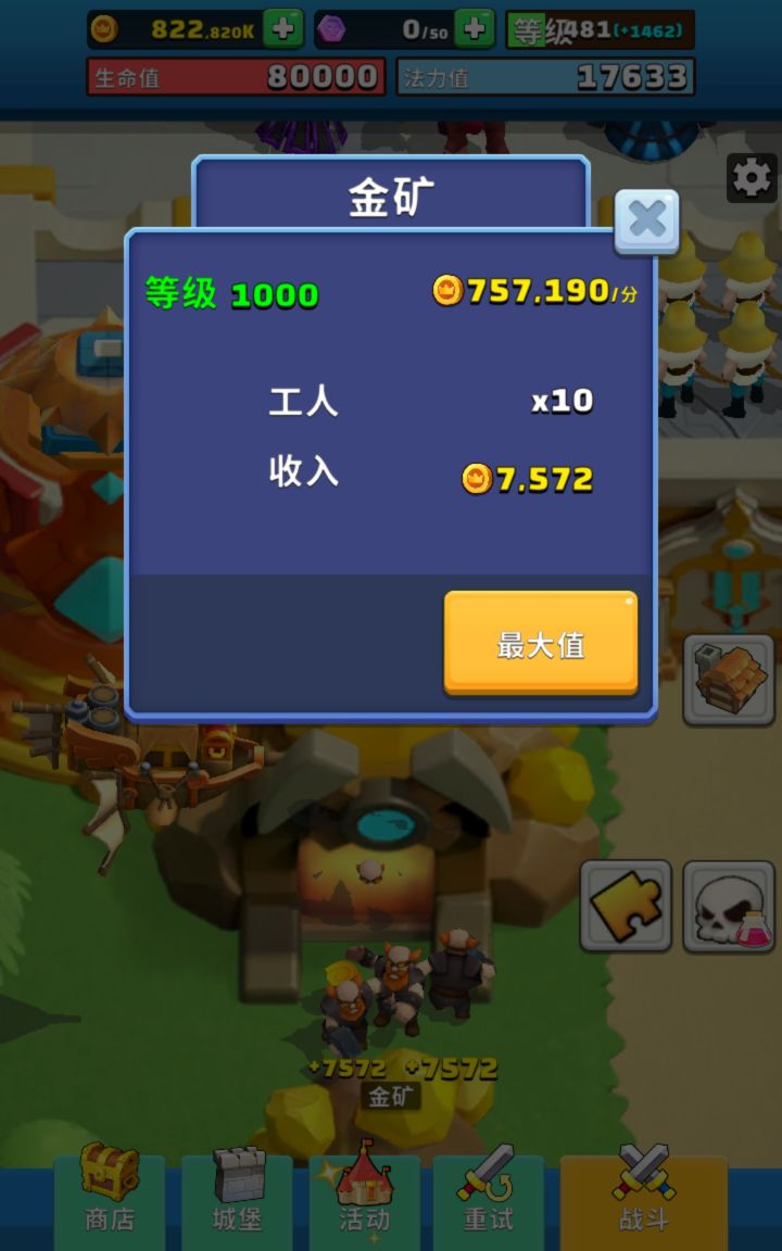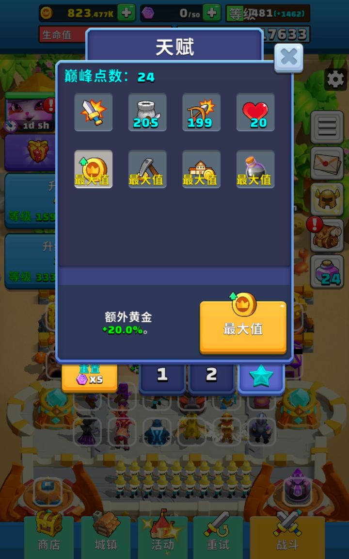 现在等级升到300了,城堡也升到400了,天赋也已经开到第2个了(提示等级481开放第3个)。但没攻略,后面不知道开放啥,没啥动力玩了。说实话这个游戏还是挺打发时间的。
