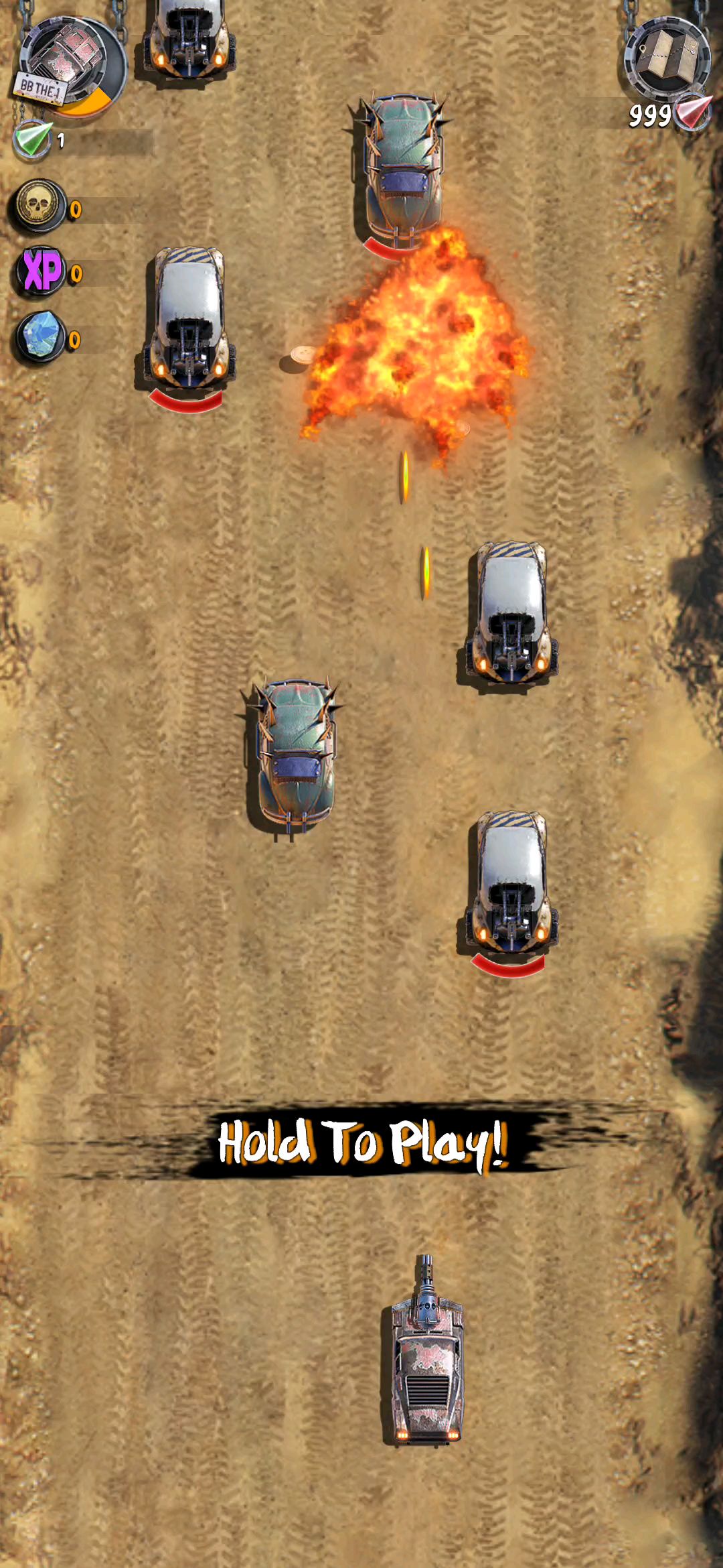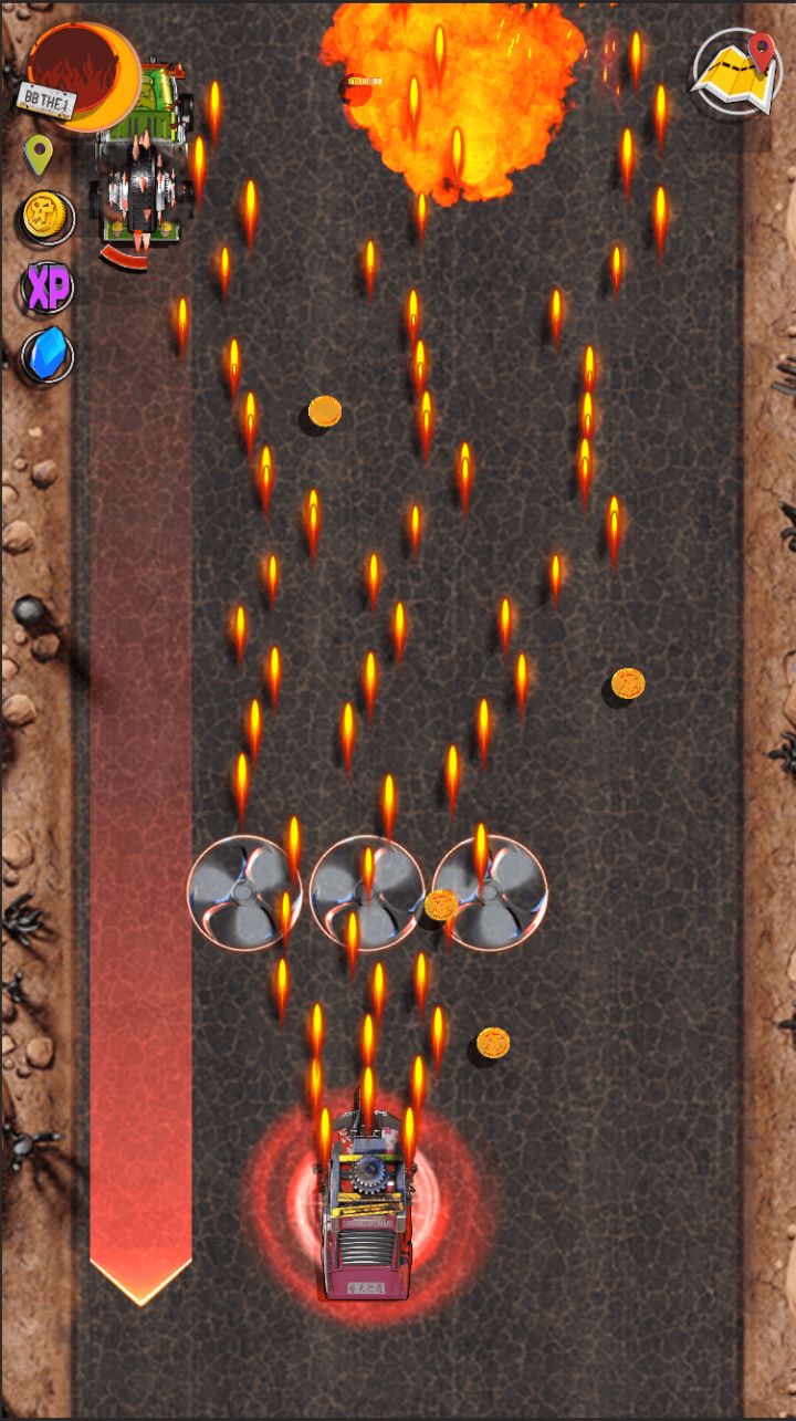 说是飞车,其实除了玩家本身操控的是车以外,其他和竖屏卷轴STG的玩法差不多。玩家需要操作车辆射爆路上所有的敌人,由于不存在弯道这种概念,所以只需要躲避一些来不及击毁的敌人即可。