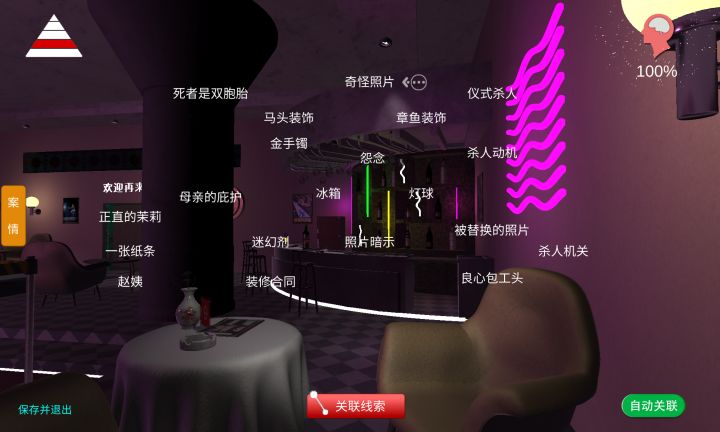 哦哦哦哦,100%了,那个鸡尾酒的尝一口之后旁边出来的小灰人的头在360°旋转的时候我还在想是不是bug,结果一看线索解析发现不是bug的我be like:ヽ(°□° )ノ