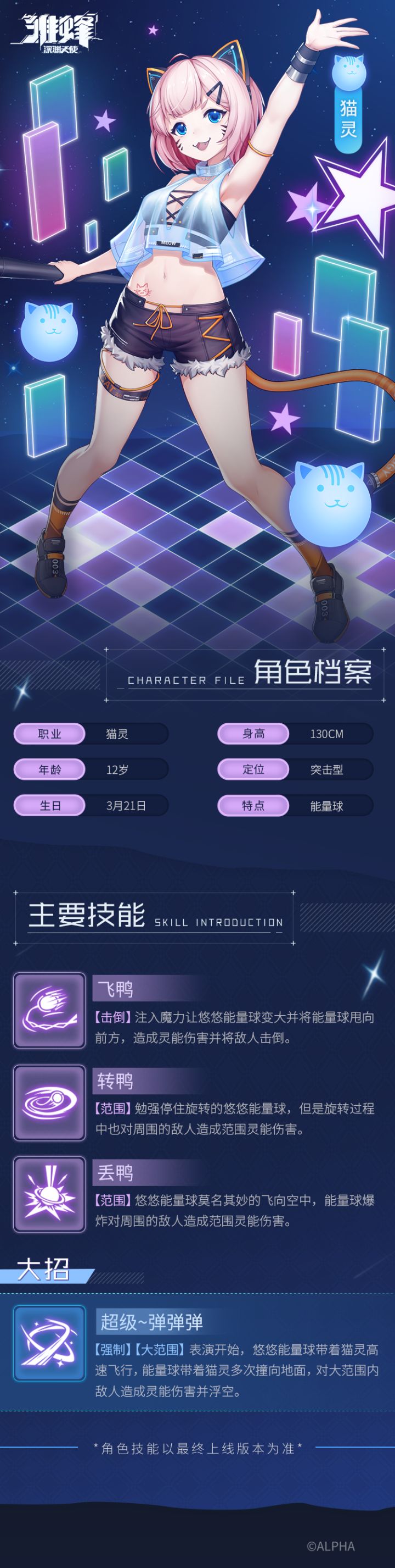 大家好,这里是的你们新手指导员爱丽丝!在【】中,策划小被子给大家简单说明猫灵的设计灵感,今天让我来详细演示她的技能机制和技能效果吧~猫灵,是一位围绕【表演秀形态】的突击型职业。在普通状态下,猫灵技能命中敌人后有概率获得一个魔法球环绕身旁。在表演秀状态下,技能命中敌人会根据魔法球的数量追加魔法球攻击。当猫灵开启表演秀状态后,所有技能均会获得大幅强化。技能【秀鸭】还会根据猫灵上一个使用的其他技