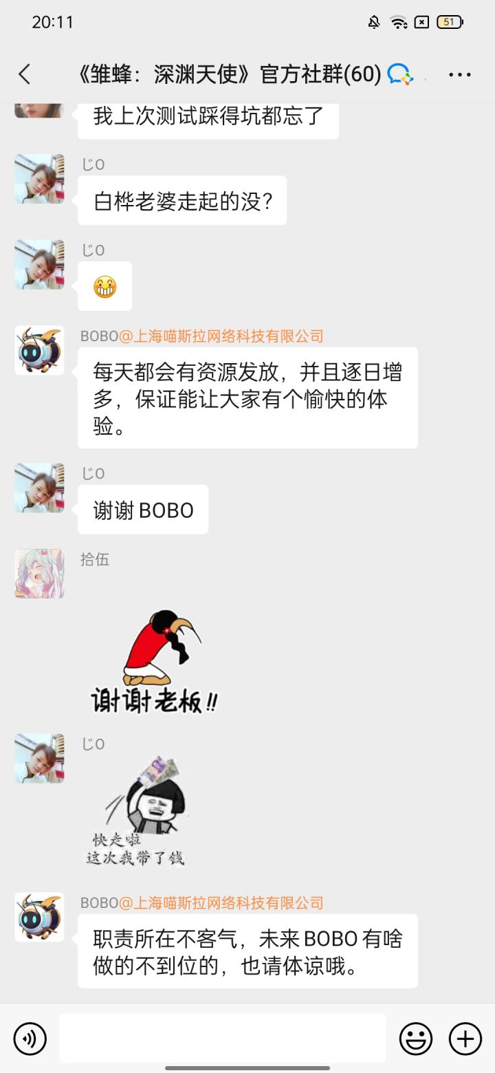 5月6日更新:恭喜下面30名指挥官中奖(奖品:尖兵角色盲盒 随机款式1个),请指挥官在5月14日前添加客服QQ:863515760填写收货地址,我们会尽快寄出奖品。致玩家们:感谢一直以来对《雏蜂:深渊天使》项目的关注与支持。在前几轮测试中,我们收到了大量的玩家反馈和建议,一直持续在做内容优化、不断完善游戏体验。近期我们针对角色养成、战斗系统、主线流程等方面做了不同程度的调整,计划于5月5