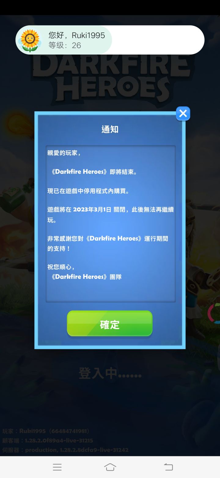 《Darkfire Heroes》啊,,快要停止运营了