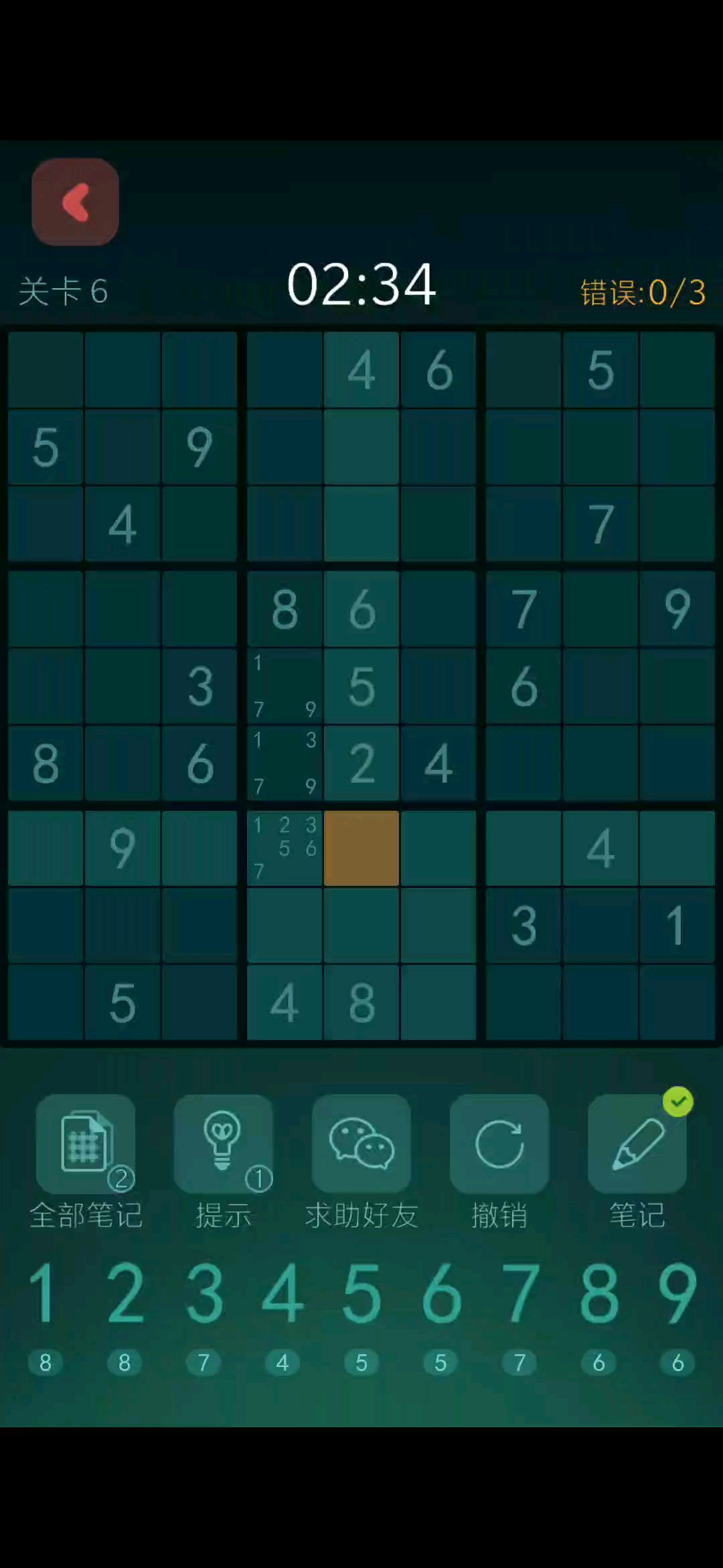 感觉上这个算是一个没有游戏体验的玩法,我前段时间推荐给朋友玩数独,然后他根据这样的方法快速过关。虽然各人有各人的玩法,但是还是想建议一下取消笔记的这个限制,让游戏更有点难度,朋友ios手机的,他去搜的时候并没有这款,而是类似版。