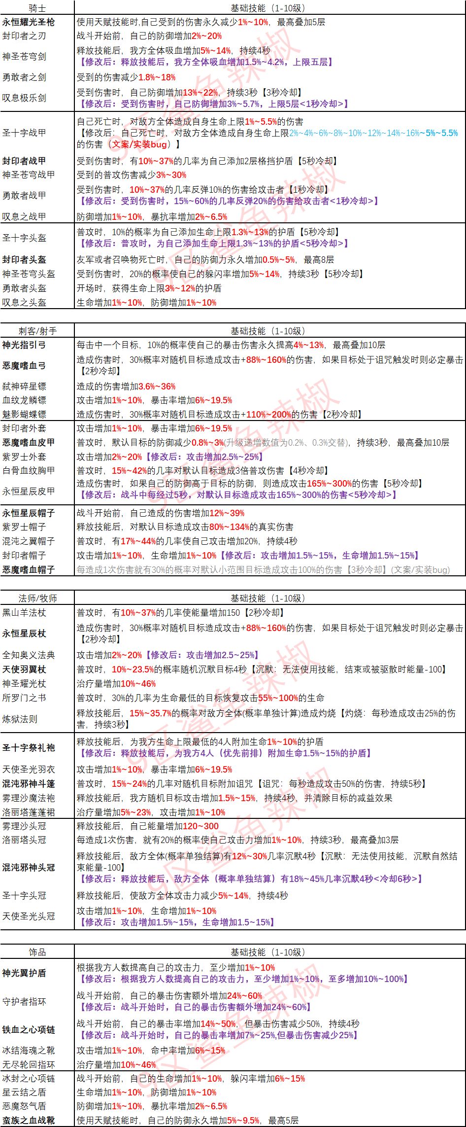 本表格系游戏内直接导出的文案,仅提供技能效果和技能数值的参考,对于表格没有补充说明的其他细节以及可能存在的文案与实物不符的情况,以最新游戏版本中玩家大佬的经验或测试结果为准。