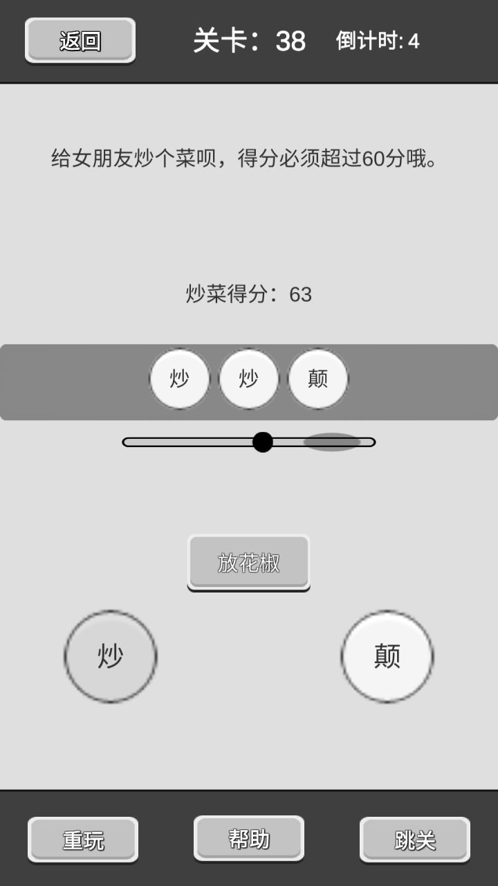 所有关卡都有30s倒计时,我看别人的截图里没有导致:33关俯卧撑,要在60s里点300下,我30s就本关失败了,哪来的手速点完啊35关开车兜风,兜满30s失败还好有跳关功能