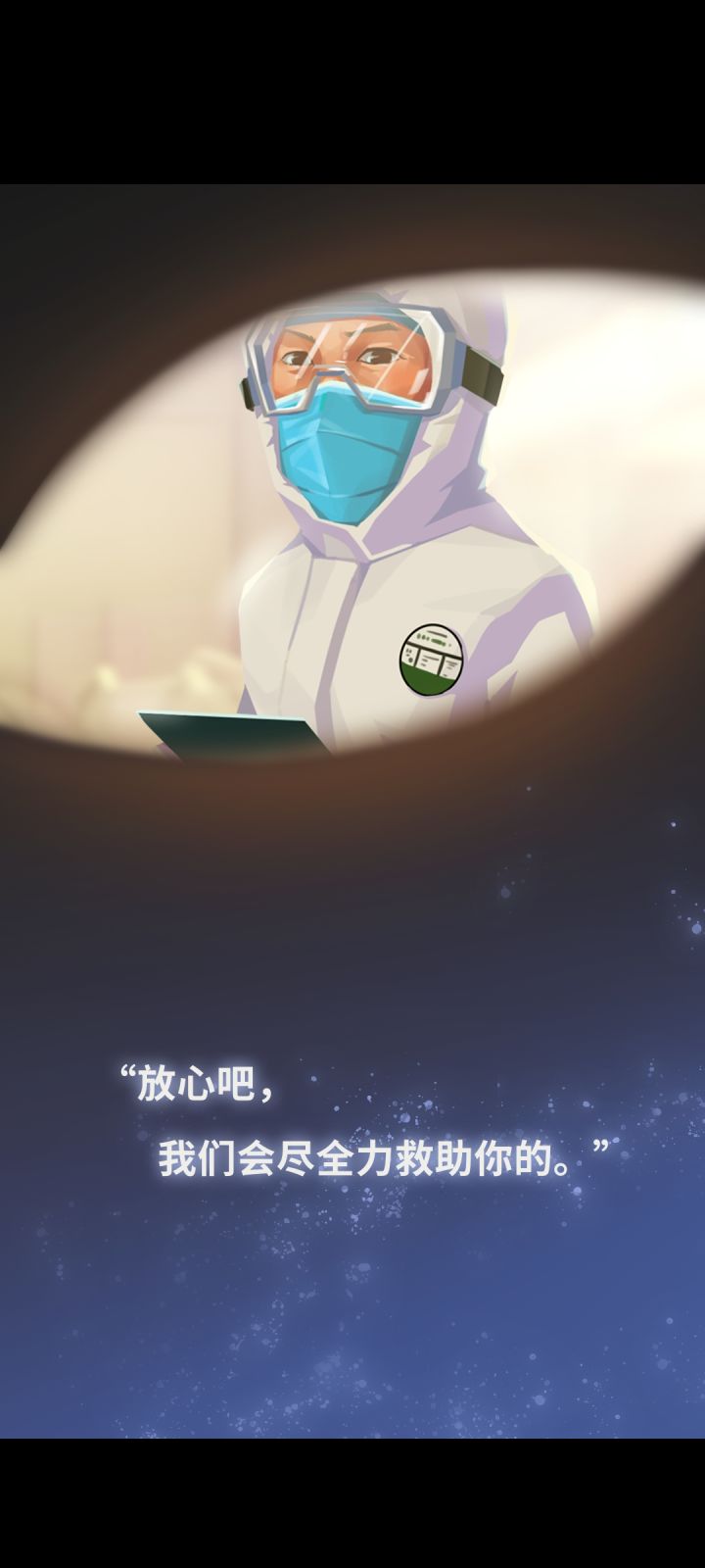 6,第一人称的眼睛对焦的玩法是我之前没遇到过的,在患者和医生的视角都出现过。在患者的视角我猜是提现病毒严重性,在医生这里我认为是反应他们高强度的工作已经让他们双眼发昏了(致敬.jpg)