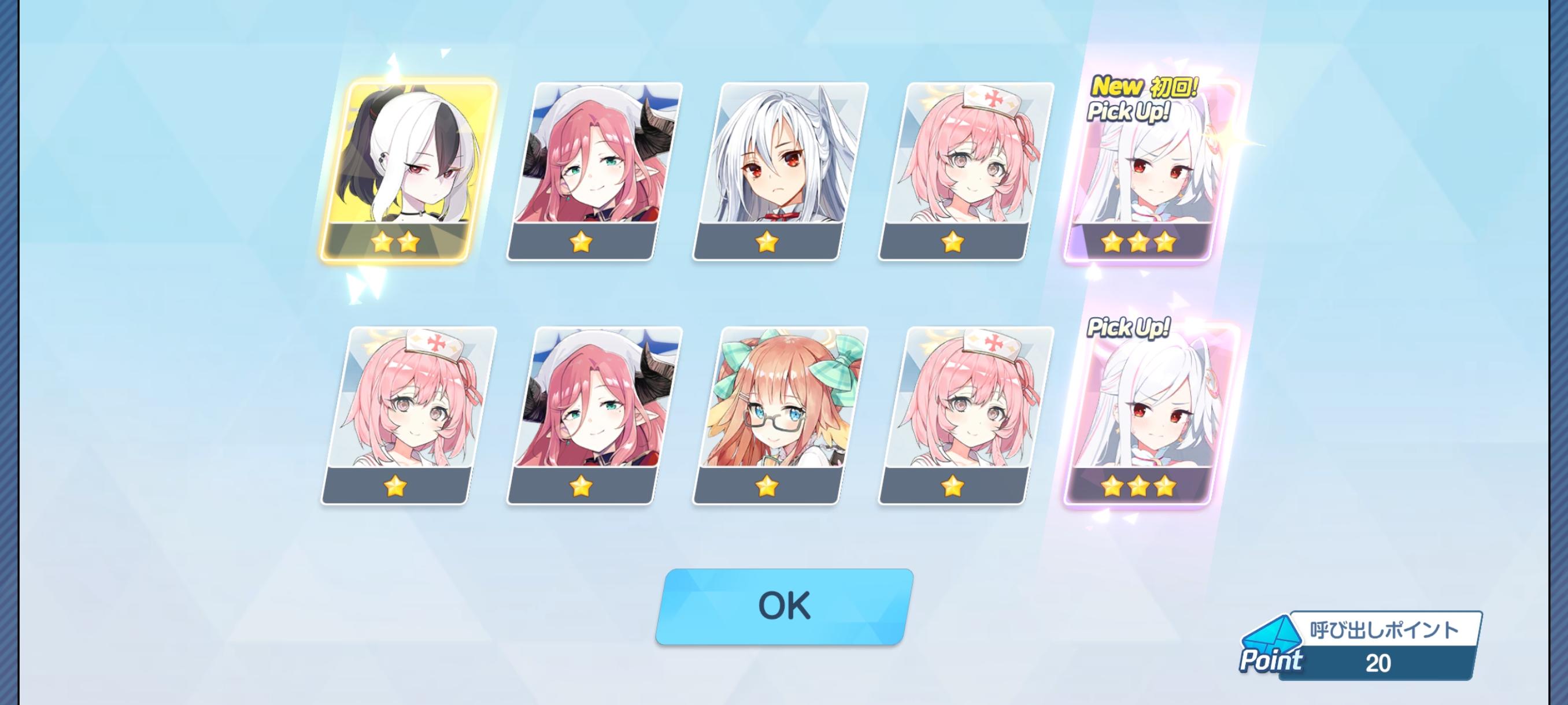 抽卡概率上,仅以个人数据来说,这种东西真的是因人而异。较高的“歪池子”现象也导致这个游戏被冠以了“必蓝档案”的名号(游戏中最低稀有度是一星,抽卡画面显示为蓝色信封),但你也不能否认有时候攒着一个十连最后就能出现一发三彩的情况(笔者就遇到过,虽然最后的结局大部分都是歪了)。所以,如果追求所谓的“高爆率”的情况,或是没有做好所谓的“无井不下池”的心理预期的话,这款游戏奇妙的抽卡概率确实很能让人吃亏。