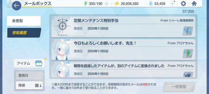 抽卡概率上,仅以个人数据来说,这种东西真的是因人而异。较高的“歪池子”现象也导致这个游戏被冠以了“必蓝档案”的名号(游戏中最低稀有度是一星,抽卡画面显示为蓝色信封),但你也不能否认有时候攒着一个十连最后就能出现一发三彩的情况(笔者就遇到过,虽然最后的结局大部分都是歪了)。所以,如果追求所谓的“高爆率”的情况,或是没有做好所谓的“无井不下池”的心理预期的话,这款游戏奇妙的抽卡概率确实很能让人吃亏。