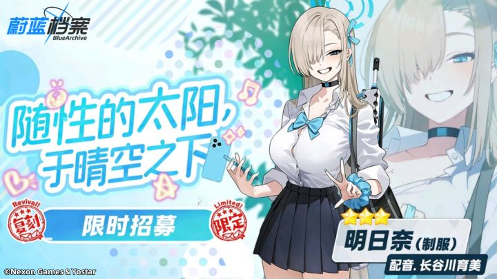 #蔚蓝档案 限时复刻招募活动即将开启,请老师不要错过哦!■ 招募时间04月01日服务器维护结束后 ~ 04月15日09:59■ 招募内容 • 限时限定复刻招募【温柔的希望,如雨般洒落】即将开启!在本次招募中,3★成员“圣娅”招募概率得到提升! • 限时限定复刻招募【随性的太阳,于晴空之下】即将开启!在本次招募中,3★成员“明日奈(制服)”招募概率得到提升! • 限时复刻招募【迟到