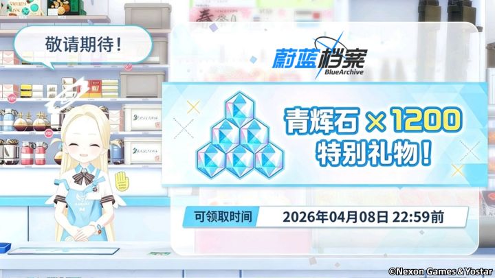 #蔚蓝档案 【运营团队的礼物】 因「千禧科技展」期间突发的数据异常影响,部分老师的体验受到了干扰。为表歉意与心意,运营团队特向各位老师赠送青辉石×1200! 虽然这次的“协议波动”打乱了节奏,但您依然可以前往「天使 24」,用这份资源与空见上一面——说不定她正等着和您一起喝杯咖啡,聊聊那天到底发生了什么呢♪ ■ 可领取时间:2026年4月8日 22:59前