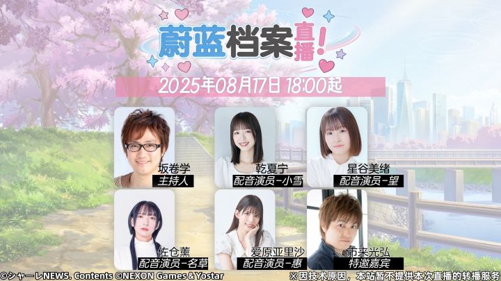 #蔚蓝档案 4月19日(周日)18:00起, 「蔚蓝档案直播!Spring Fever SP」特别直播即将开播!▼ 出演名单 坂卷学 乾夏宁 星谷美绪 佐仓薰 爱原亚里沙 市来光弘 ※因技术原因,本站暂不提供本次直播的转播服务。 不过直播结束后,运营团队会将游戏内部分前瞻内容整理为《阿洛娜的日程笔记》,欢迎各位老师关注!