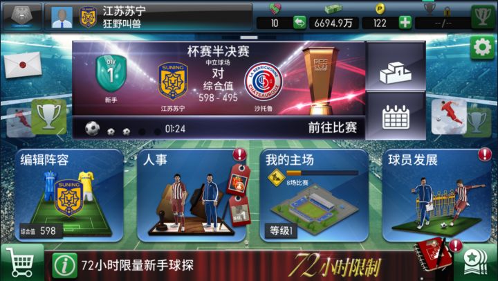 游戏心得和技巧的话,排在第一个的就是前期千万不要把签567⭐的球探,由于游戏内没有说明清楚球探名单内年龄不会增加,一开始不少人会把7⭐全签了,这样做好处不多,坏处是如果我匹配到你......,其实实属浪费。主场我个人建议优先升级休息设施,青年队和训练设施,目前开服通过活动可以获得超多货币,所以球场等提高收益可以延后,球迷会初期没必要升,因为一开始都是满座。还有的话,一般情况下,对手整体实力比你的球队弱一大截时,控球/短传比较好,整体实力比你强一大截时,反攻/???比较好,长传短传要我觉得得看阵容,可能如果身高身体对抗不强抢不到,我的阵容长传就是送球。最后给一个富含超多技巧的小链接,队形用法,球员技巧作用,战术用法等,点击游戏右上角↗的设置,这些其实在游戏自带的“说明”内都有哦~