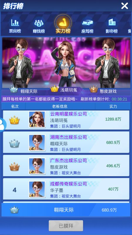 前三篇攻略都被加精了,再次感谢版主和各位的支持!PS:上论坛交流写攻略果然是发家致富的途径,小伙伴们赶紧躁起来啊!加精一篇4000钻+10*60h时钟,还有比这更赚的吗?第一篇是基础艺人篇,第二篇资源获取,第三篇就是实力提升,第四篇是各类活动及冲榜了,仔细看,平民也能逆袭冲榜。一、娱乐风云里的各类活动1、 票房争夺很考验主力艺人的星级,奖励为每天的票房榜和拍摄收入。1、票房榜。一般是按实