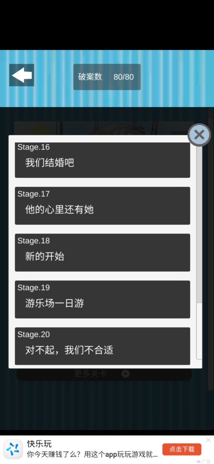 通关了,我感觉最后女主没找到真爱很遗憾,但是stage1,的那个男的头像让我弄了好久,我知道是为了做铺垫,但是就感觉不太好,希望作者能加一下找到真爱,我还是比较喜欢皆大欢喜的结局。。然后那个到那个纹身男的家里,那只猫让我想了好久。。不过,说实话,女生相亲时候的观察力这么厉害。。不敢相亲了。。。