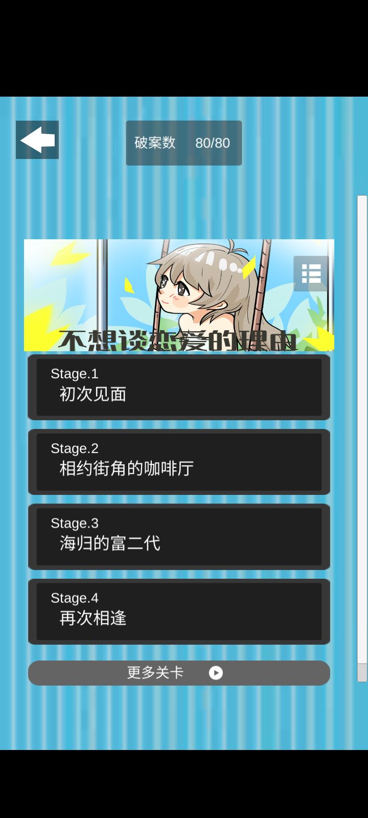 这游戏完全就是一个关卡给一张照片,喊你从照片中找女生不开心的原因,还不如看图找茬,有一个点让我难以接受,游戏让点击一个地方,找出来,正确就通关,但是,就算和游戏中女生想到一起,你没有点击到游戏规定区域,只是和它相关但没什么大问题的地方,它也不会让你过关,反正不喜欢这个游戏