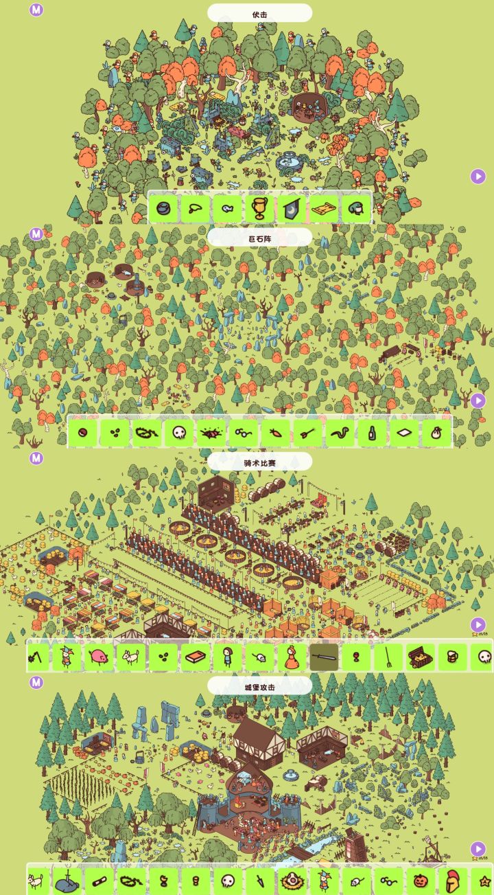 比较经典的解谜游戏,场景宏大,角色众多,包括剧情模式和在线模式。剧情模式总共56关,主线故事有26关,维京传说、日本传说、大路通罗马三部分各10关。在线模式中可以通过地图编辑器创建专属地图,并分享至游戏大世界,让更多人看到自己的创作。每个场景都有极具特色的建筑,都配以生动鲜活的角色,他们或是战斗,或是玩闹,或是为生计奔波。每进入一个主题的场景,就像走入他们的世界一样。游戏玩法很简单,就是通过观察