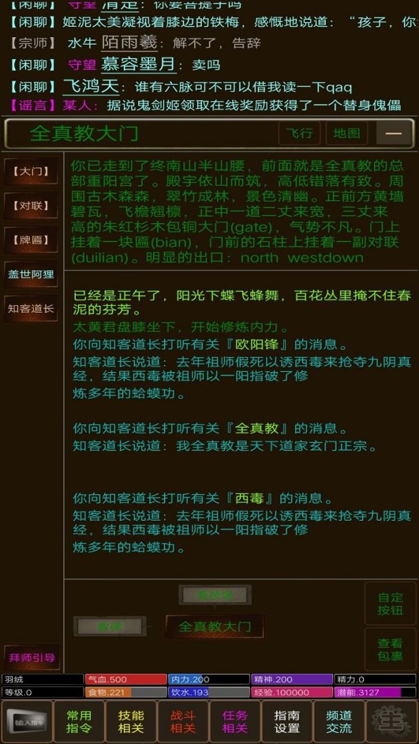 我们致力于打造一个真正的高自由度文字武侠世界,给予你特殊的游戏体验,天下风云出我辈,一入江湖岁月催,欢迎大家加入这个江湖!