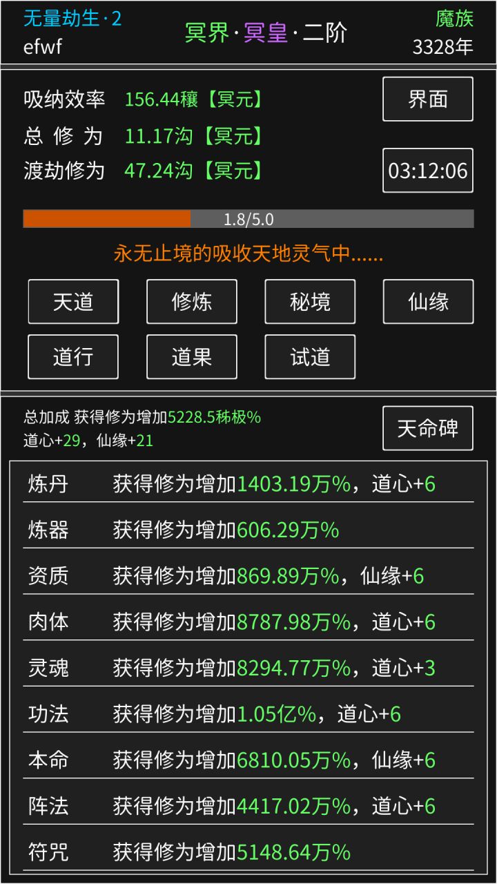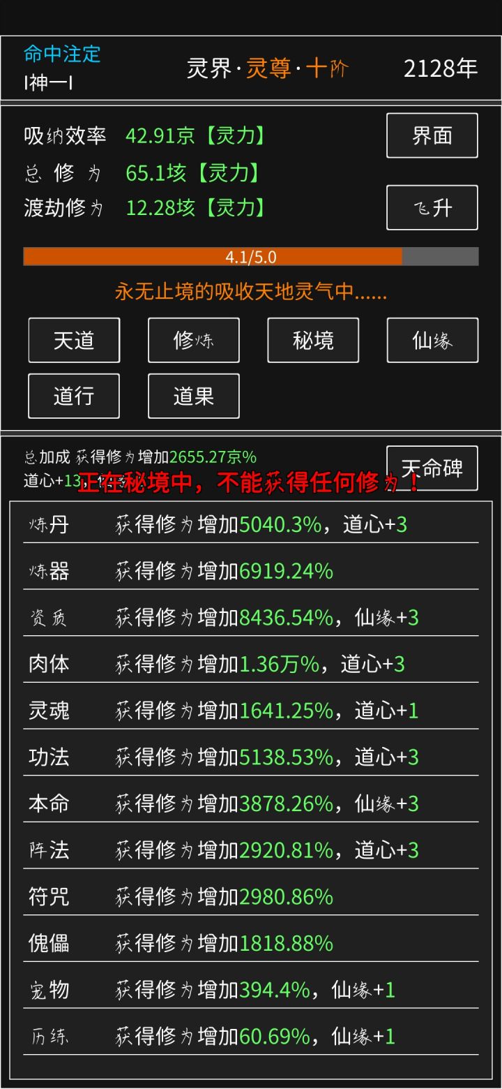 第一天玩的是修为够了,道心够了等更新
