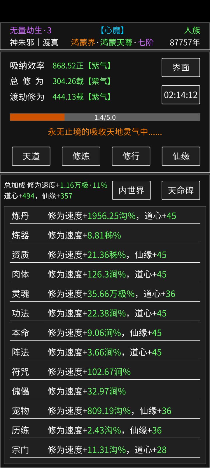 玩了一段时间修真无止境,道龄5200余载,现在混魔界,道行1000年,千年道行不容易,在此立帖纪念!