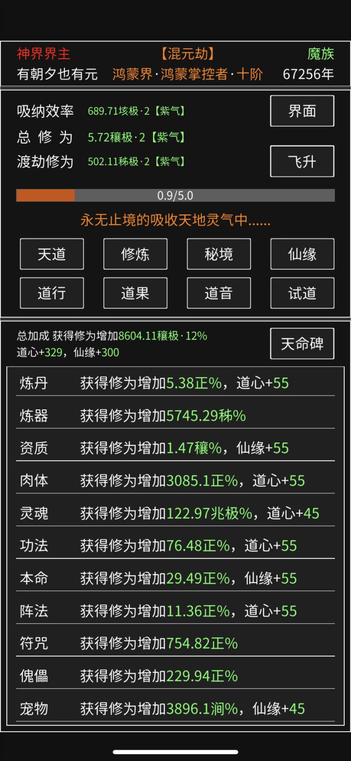玩了一段时间修真无止境,道龄5200余载,现在混魔界,道行1000年,千年道行不容易,在此立帖纪念!