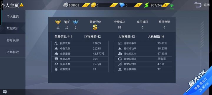 我有游戏钓鱼垂钓宗师我数据统计#游戏日常