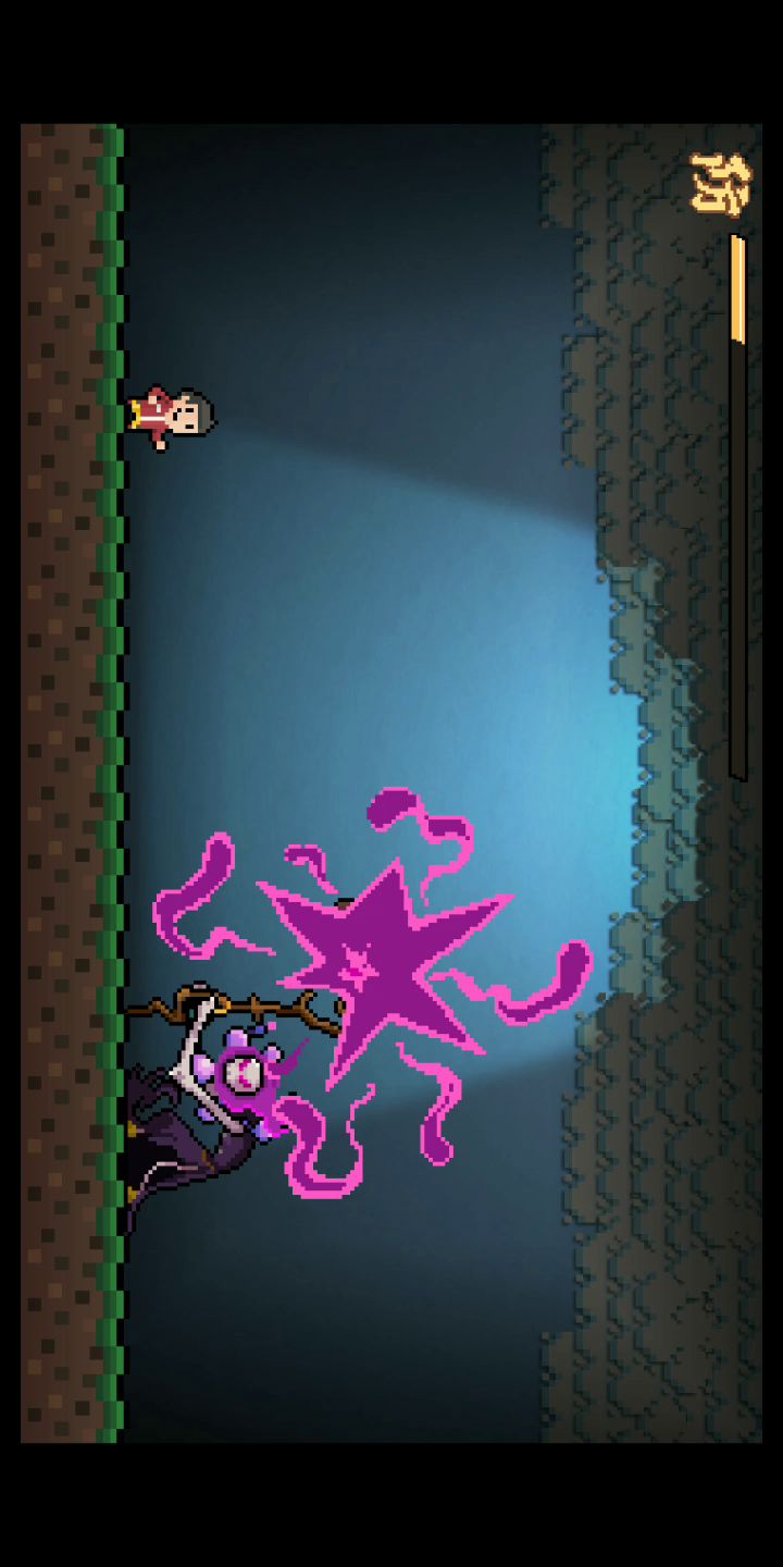 录了好几次,失败好几次,脑壳都痛了。 第一关近战的镰刀最容易挡,远程靠肌肉记忆挡两次,然后镰刀飞出去的时候,长按跳跃键。 第二关上面的钟乳石靠肌肉记忆挡,滚石要靠近的时候点一下,有规律的,地刺要到刺身上的时候再点防护。 死多了就知道了