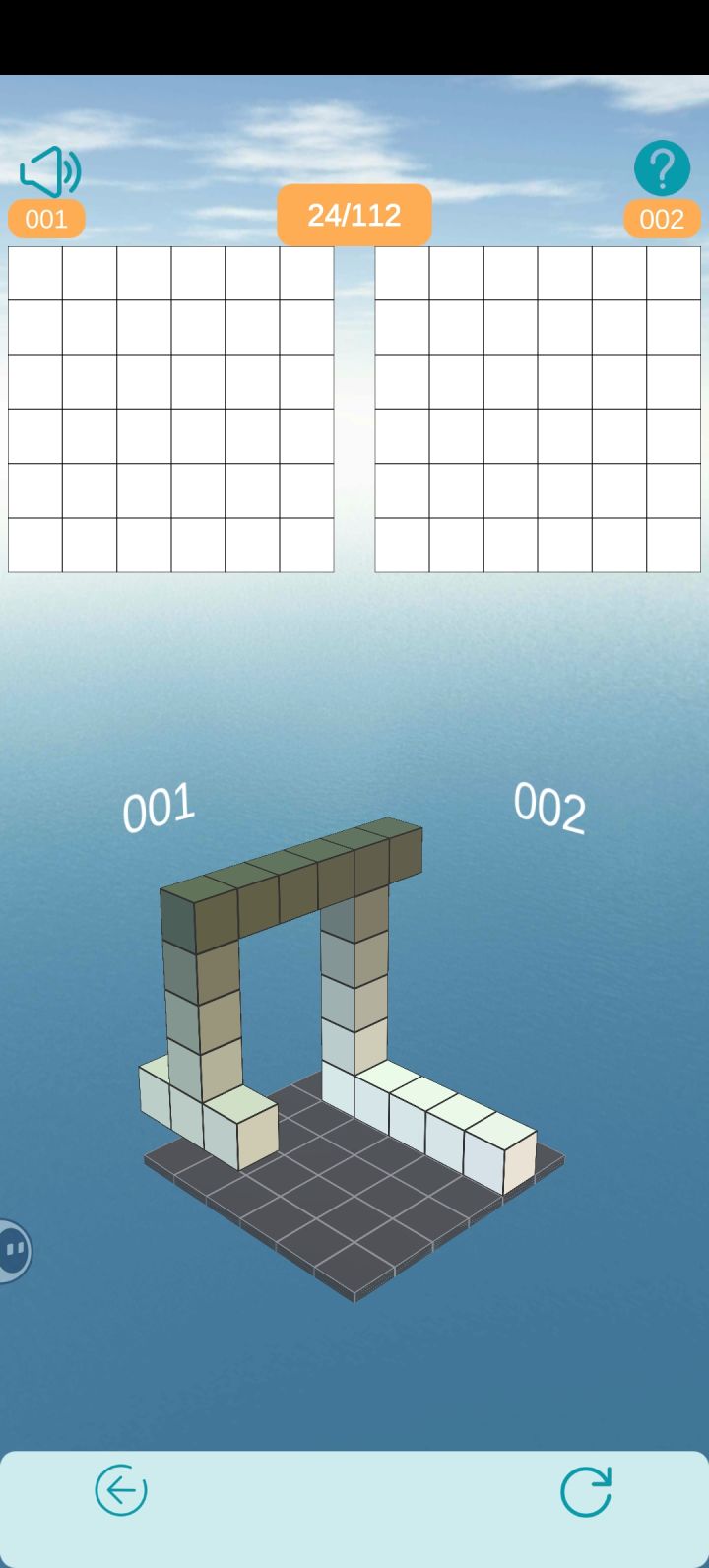 通关了,二星很机械,嗯我就看一楼正视图摆在哪个位置 左视图在哪个位置,选好位置添加。然后二楼三楼 以此类推。 根本无需空间想象能力,但是可以搭好这些积木以后 去观察他们的位置,反过来想象它的两个视图是什么,。至于一星,嗯 当时玩的时候有好多难关,可是后来也觉得,如果各层的颜色区分比较鲜明的话 也不会错的,156 层 颜色比较好辨认 就是二三四层颜色太接近了,所以在 纵向悬空 或左右有空隙的地方 就很容易被视觉错位欺骗