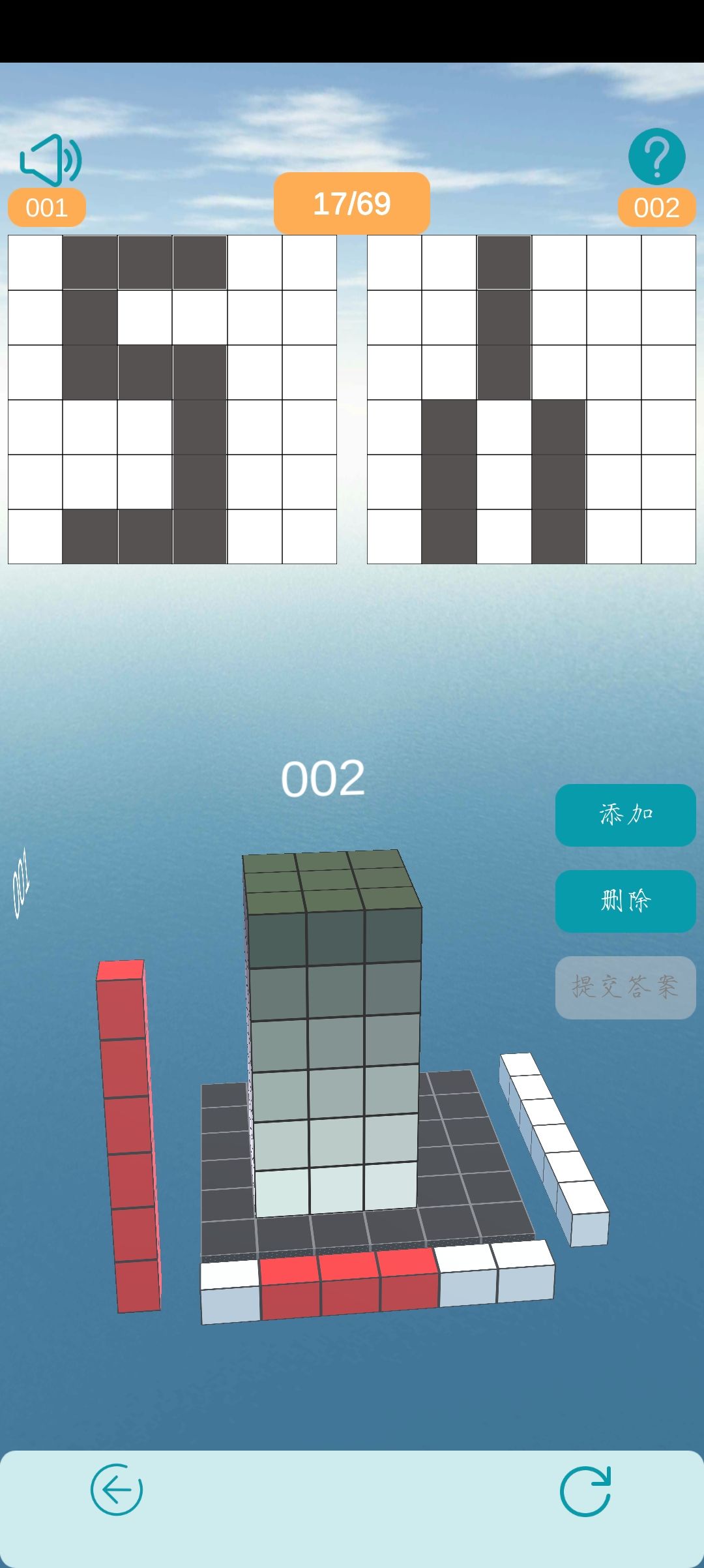 前言&技巧概括:游戏评论里,好多人反馈说有bug,那实际上是因为游戏中存在悬浮的方块这一设定,以及有的方块被遮挡了,无法看到的情况。 鉴于画幅和阅读体验的关系,一般难度的我只给出答案,比较有难度的关卡会稍微给一点解析(例如标注悬浮的方块) 如果还有不明白之处,欢迎进入qq群向大佬们请教~ -------------------------------------------------------