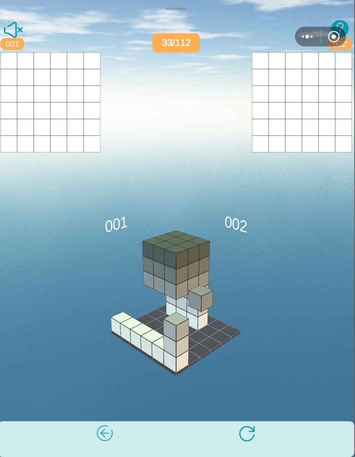 没有思考全是技巧 分层分析 先看001第一行哪几个格子有阴影,然后在立体图里点亮 然后看002第一行,哪几个格子有阴影,在立体图里点亮 然后点亮高1,添加,第一层就好了 然后每一层以此类推 建议卡关的时候用 因为用了这个技巧之后就没什么思考的乐趣了,慎用