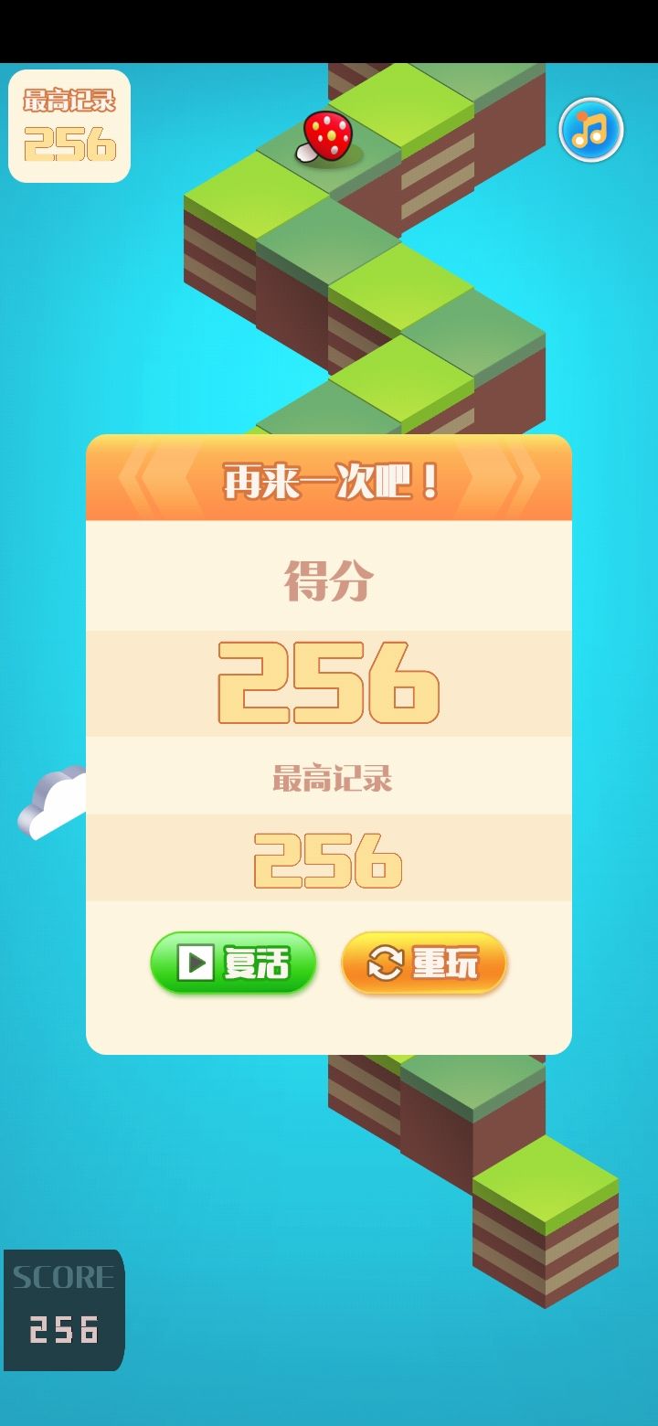 个人感觉玩法跟舞线比较相似😅,主要元素和滚天基本差不多,希望能有更多的玩法,比如岔路和传送门之类。分数按照转弯次数来,导致在开始的小岛可以有个几十分😐。玩到后面越来越快,基本是拼手速和先往远处看地形。手速不行所以我比较菜,不复活基本只有二百来分😂😂😂。跟舞线比较相似因为如图😂😂😂玩法真的都是左右转向啊😂😂😂
