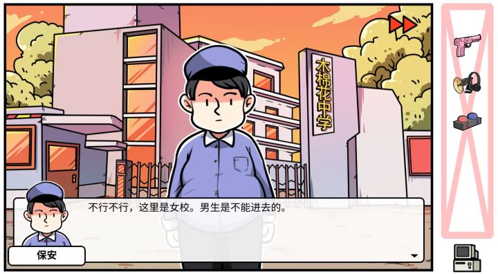 攻略索引:第五章开始DLC的剧情开始进入了高潮,矛盾冲突爆发。真相也逐渐浮出水面。因此本章和接下来一章将写在一起,因为实在不舍得分开了,连贯度太高了,剧情演出效果也是相当炸裂。本章无结局。男主下班后就直接来到了木棉花中学,然而等了三十分钟依然没有等到老婆。男主想进学校查看情况,但由于木棉花中学是女校,保安不让男主进去。 男主急中生智,想到了刚刚店员送的女装。于是换上女装,打算萌混过关。而保安