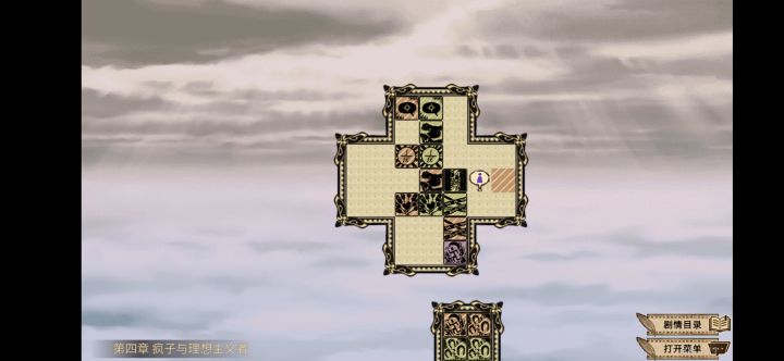 1.使用文字优化UI。可以看出制作组为了保持界面的整洁和美观而尽量避免使用文字,但这一点在游玩过程中给我带来的负面体验大于正面体验。例如点击右下角墨水瓶来进行快捷存档,没有弹出任何反馈,玩家就无法知道自己是否成功存档;选择章节的界面因为文字的缺失也变得不够直观,打完第一章时弹出的选章节界面我还以为是过场CG傻傻的等了好几秒x