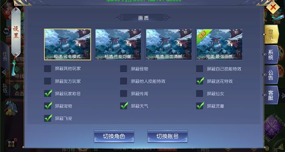 为了让各位更了解《太极打僵尸》这个游戏,现在介绍下游戏的最基本的设置功能。设置:1.屏蔽 玩家可以通过屏蔽游戏的特效,天气,调整画质等以适应设备的硬件,以达到更流畅的体验。也可以选择屏蔽他人的部分特效,已达到更舒适的游戏体验。2.系统 分为基础设置和挂机设置,可调整音乐,设置拒绝添加陌生人,进行挂机设置等。3.公告 发布官方的消息,包括活动更新,版本更新消息等。4.客服 联系客服,反馈意