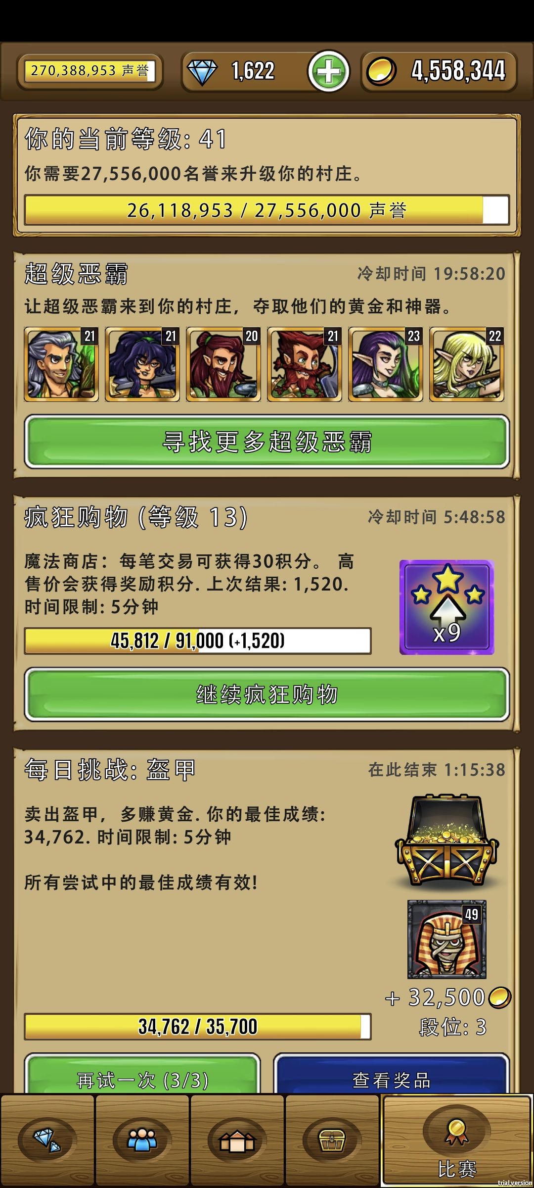 终于更新版本了,本次更新了新英雄超级恶霸,看一下他们怎么弄吧 首先得在日常挑战这里看到恶霸,要在这里选择挑战,接着就出去外面选英雄,可以看到恶霸的需求量远远超过超级英雄,妥妥的土豪 恶霸进去后跟普通英雄一样买东西,但是她会根据物品的量来提升她自己的等级,房子中间有等级显示的,就是恶霸进的 买完东西后恶霸就会进去地牢,变成boss,然后英雄就回去挑战 挑战完成后会掉落神器,这些神器有细微的加成,三个