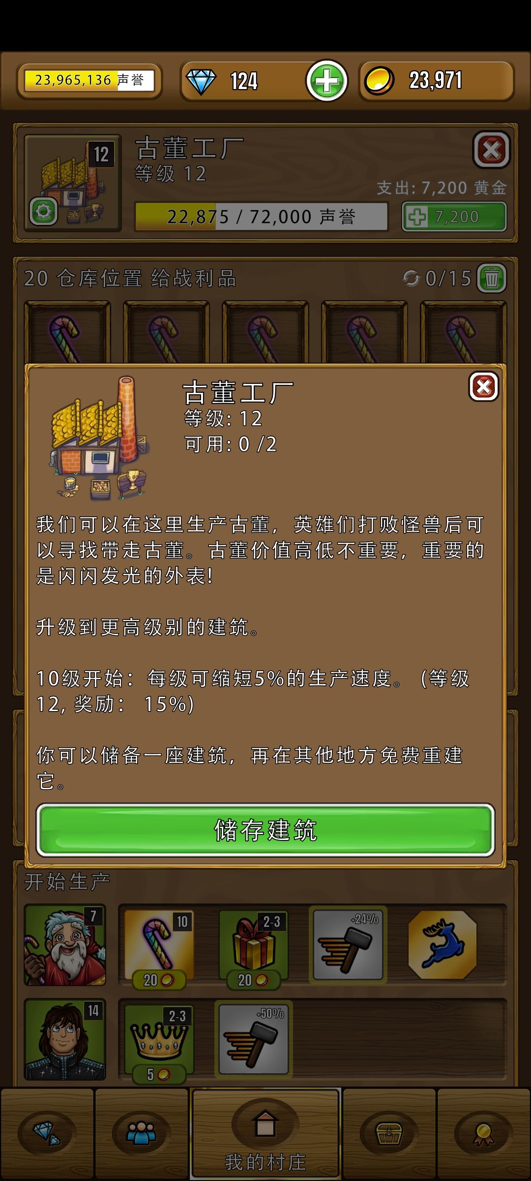 优先升放圣诞老人的古董工厂,缩短生产时间,多饲料就多人,多人就多钱。