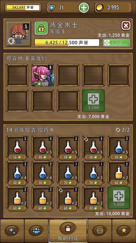 炼金术士为英雄们制作药水,用于对战怪兽。出售药水可以为你的村庄获得可观的收入。不同的药水有不同的功能,针对不同的英雄。主要分为以下几类:1、生命药水:治愈受伤的英雄们。最基础的药水,所有英雄都会需要。2、法力药水:为魔法师和弓箭手补充法力。3、体力药水:为勇士和十字弩手补充体力。4、经验药水:增加英雄在战斗中升级并在战斗后去训练的概率。与训练系统挂钩。炼金术士有阶级的区别,分为普通、专
