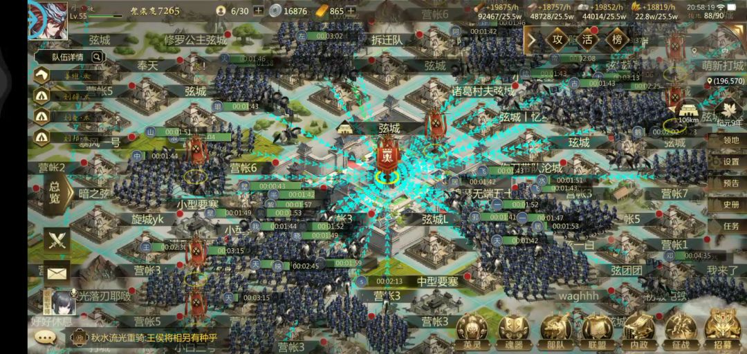 每到攻城的时候都颇有一种一支穿云箭,千军万马来相见的感觉,队伍从五分钟开始越来越多越来越多,当然也有些许人员抢跑,可惜这里抢跑是木得奖励的